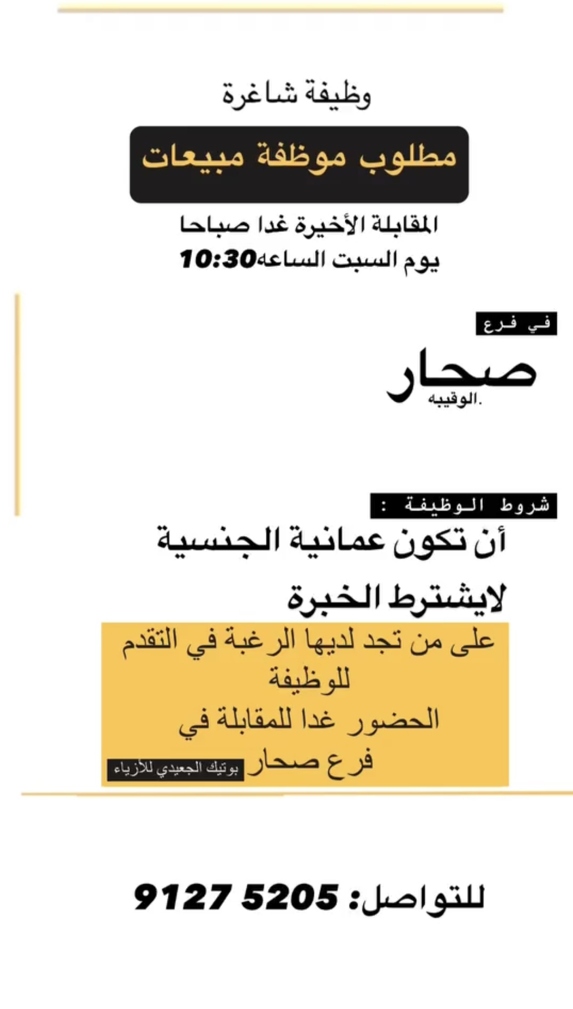 الجعيدي للأزياء في صحار - وظيفة شاغرة ( موظفة مبيعات )