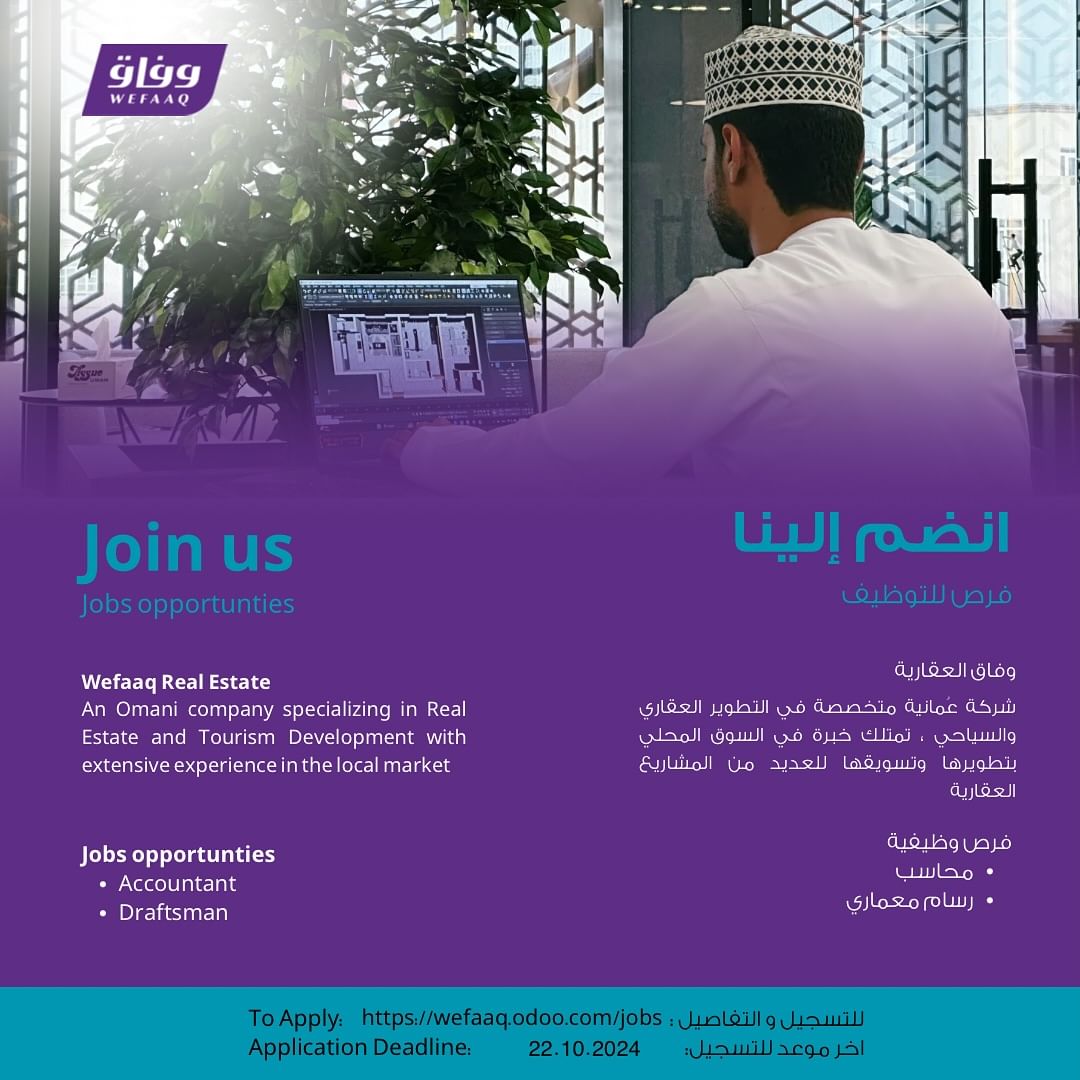 شركة وفاق العقارية - فرص وظيفية ( محاسب + رسام معماري )