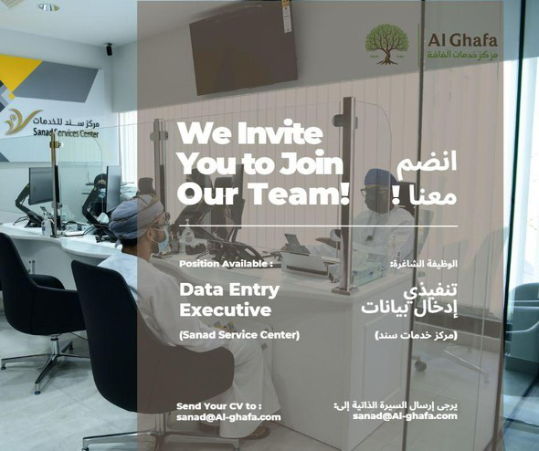مركز خدمات الغافة - وظيفة شاغرة ( تنفيذي إدخال بيانات )