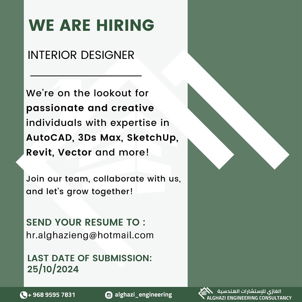 شركة الغازي للاستشارات الهندسية - فرص وظيفية ( مصمم داخلي + مدير العلاقات التجارية والتطوير )