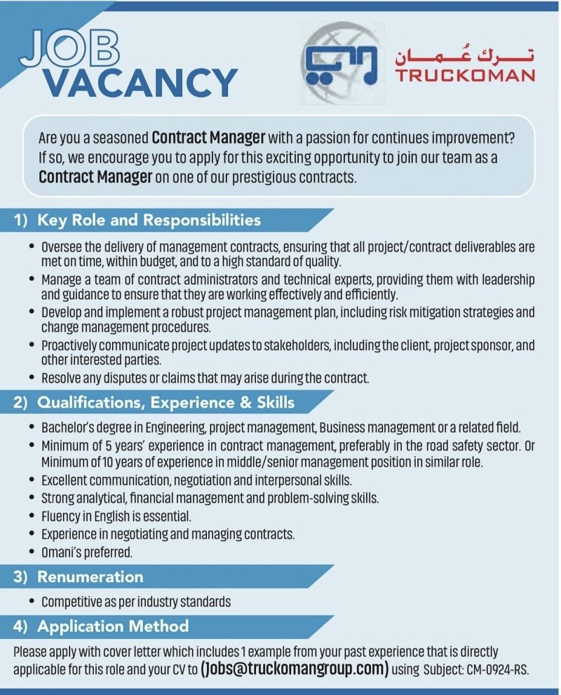 شركة ترك عمان - وظيفة شاغرة ( مدير عقود )
