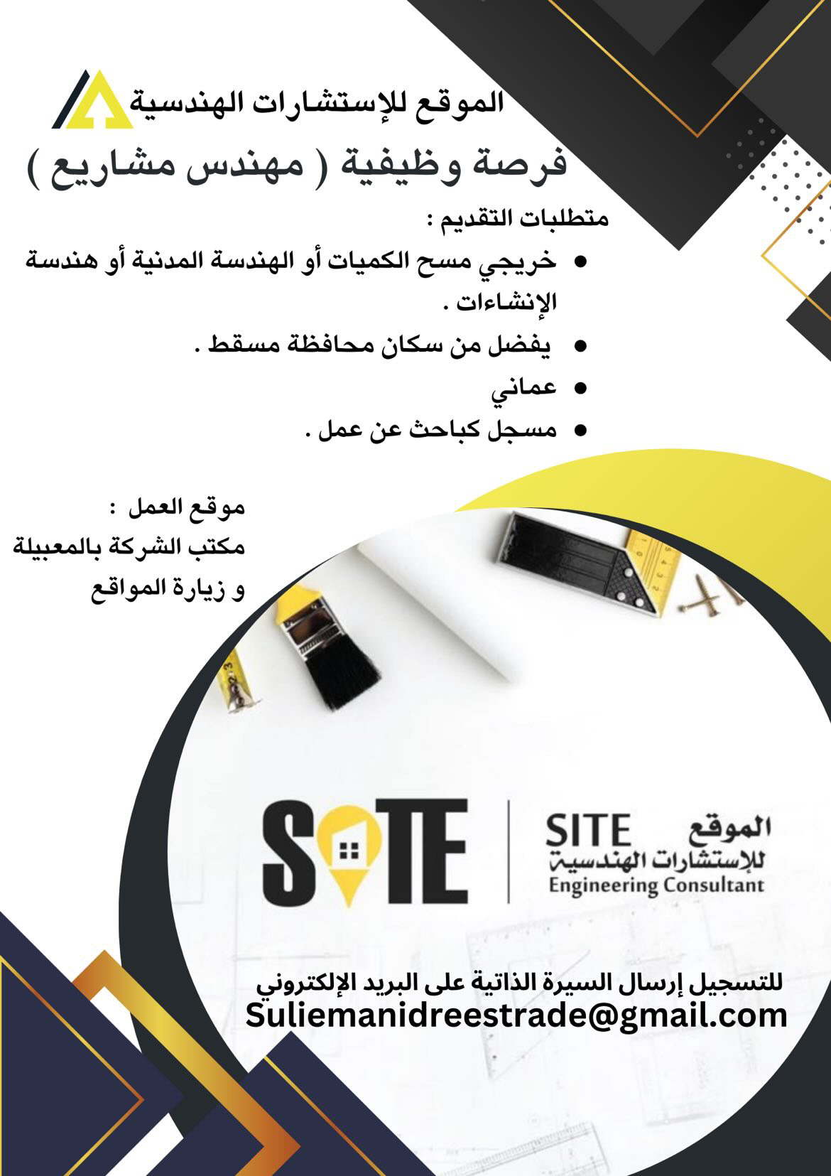 الموقع للاستشارات الهندسية في المعبيلة - وظيفة شاغرة ( مهندس مشاريع )
