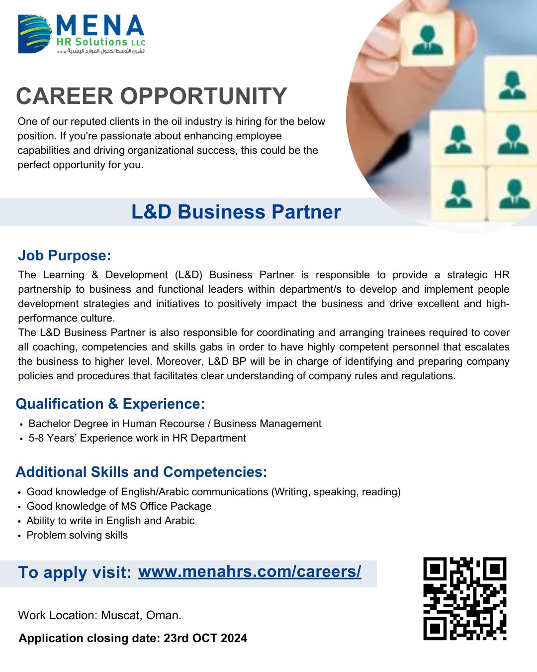 الشرق الاوسط لحلول الموارد البشرية - وظيفة شاغرة ( L&D Business Partner )