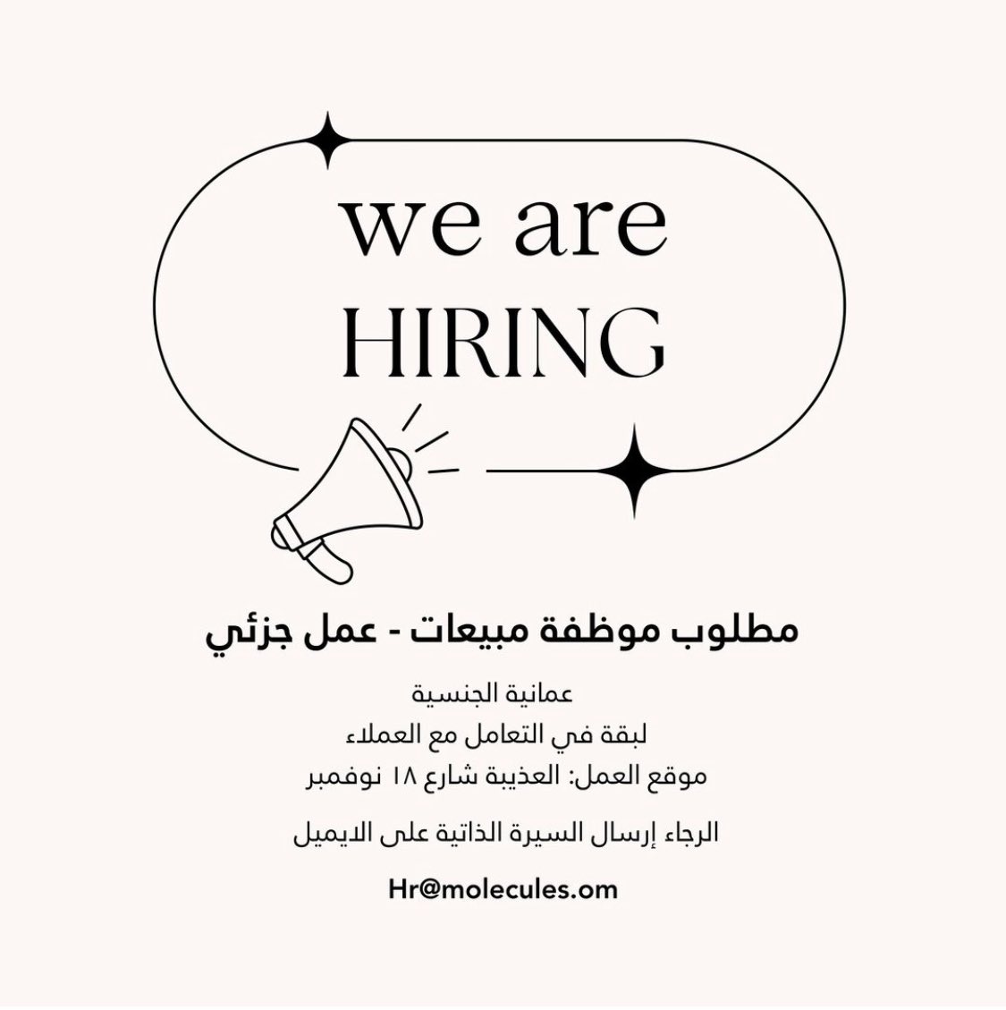شركة molecules - وظيفة شاغرة بدوام جزئي ( موظفة مبيعات )