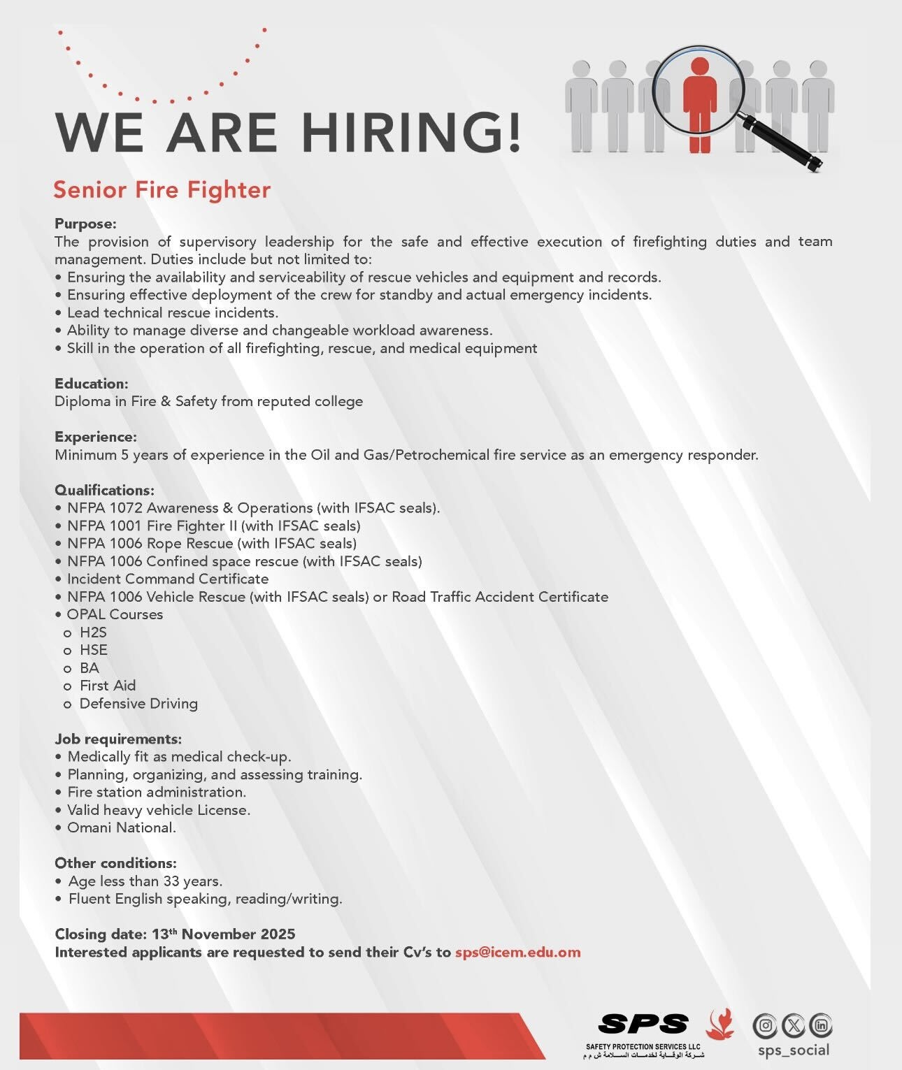 الكلية الدولية للهندسة والإدارة - وظيفة شاغرة ( Senior Fire Fighter )