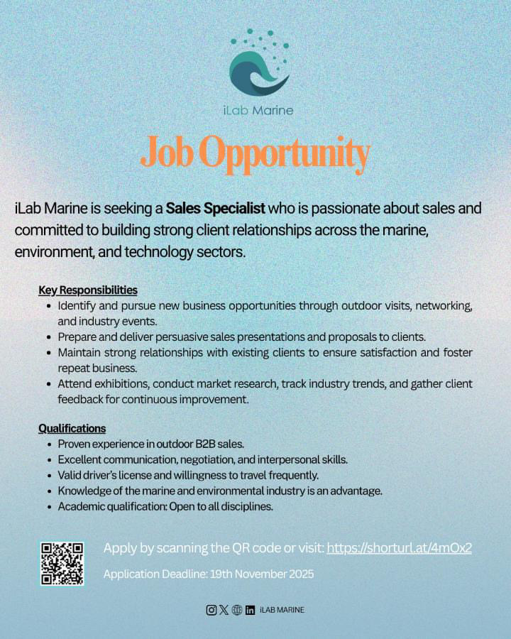 شركة آي لاب مارين - وظيفة شاغرة ( Sales Specialist )
