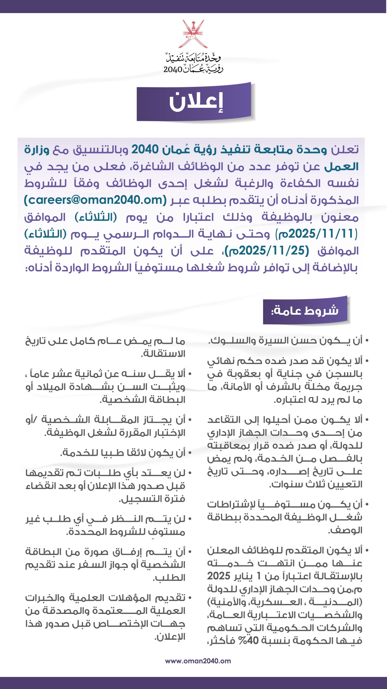 وحدة متابعة تنفيذ رؤية عمان 2040 - وظائف شاغرة