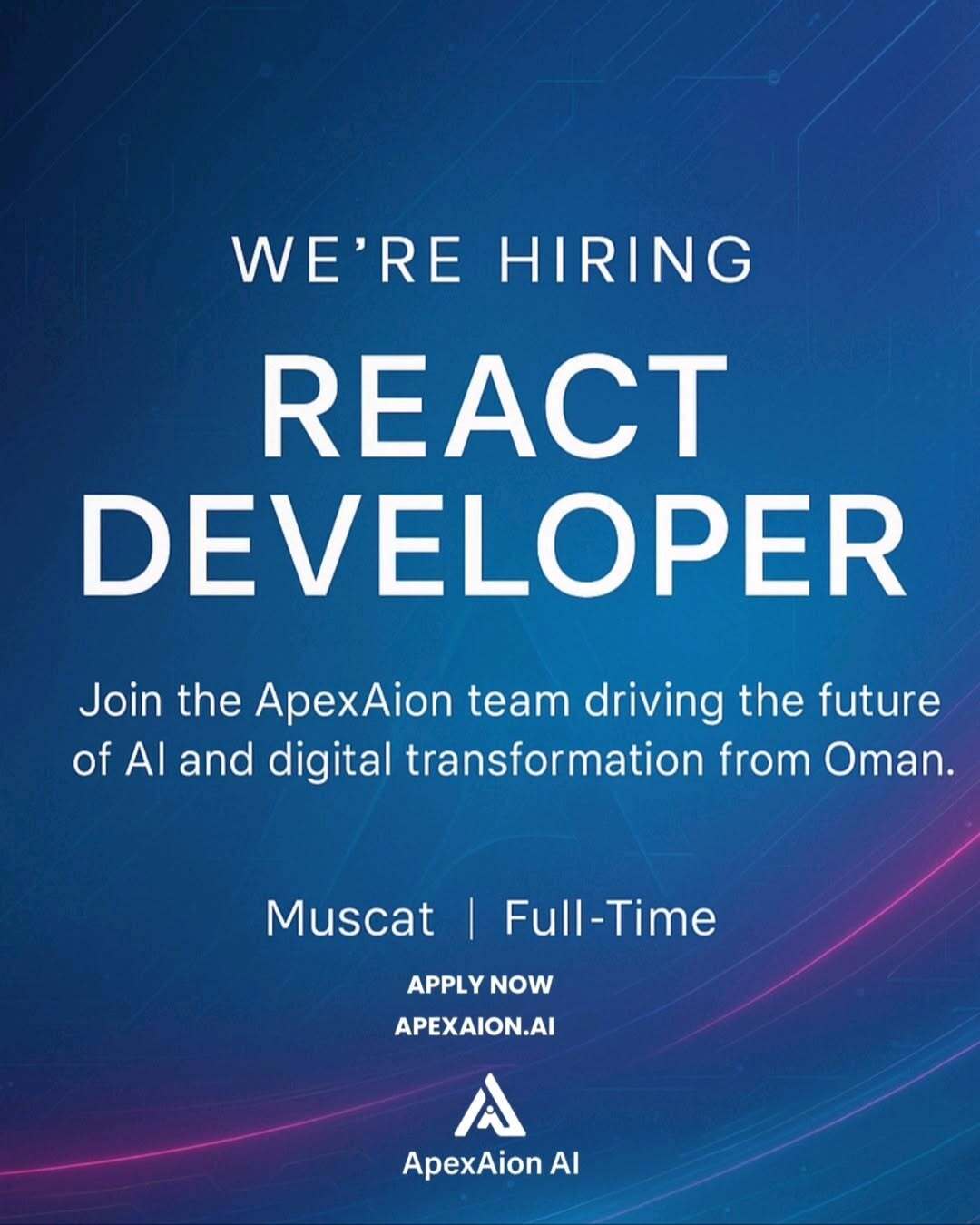 شركة Apex Aion AI في مسقط - وظيفتين شاغرتين ( REACT DEVELOPER + EXECUTIVE ASSISTANT TO CEO )