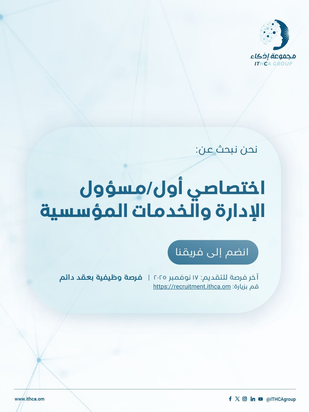 مجموعة إذكاء - وظيفة شاغرة ( اختصاصي أول امسؤول الإدارة والخدمات المؤسسية )