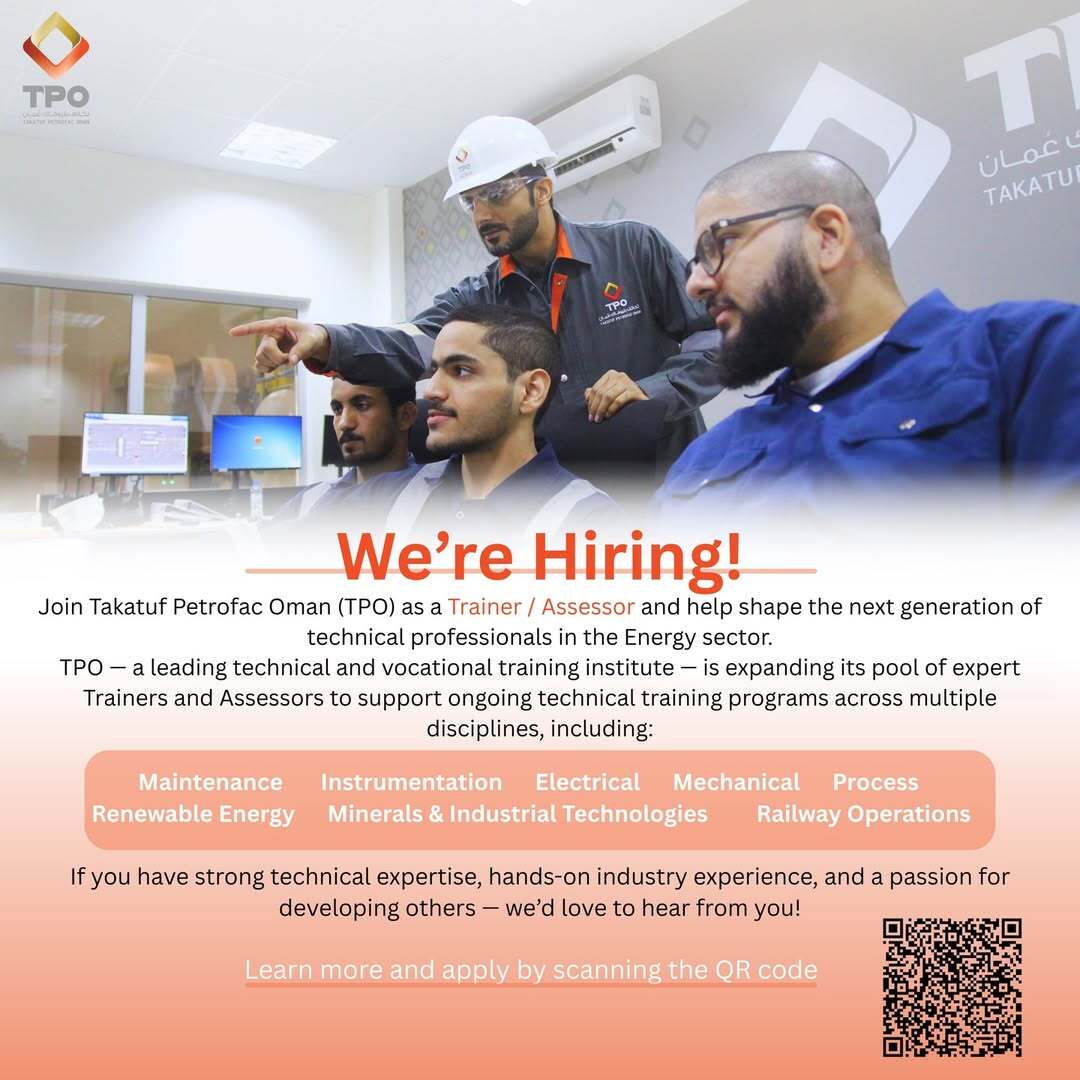 معهد تكاتف بتروفاك عمان - فتح باب الانضمام لفريق المدربين والمقيّمين من ذوي الخبرة إذا كنت تمتلك خبرة فنية وميدانية