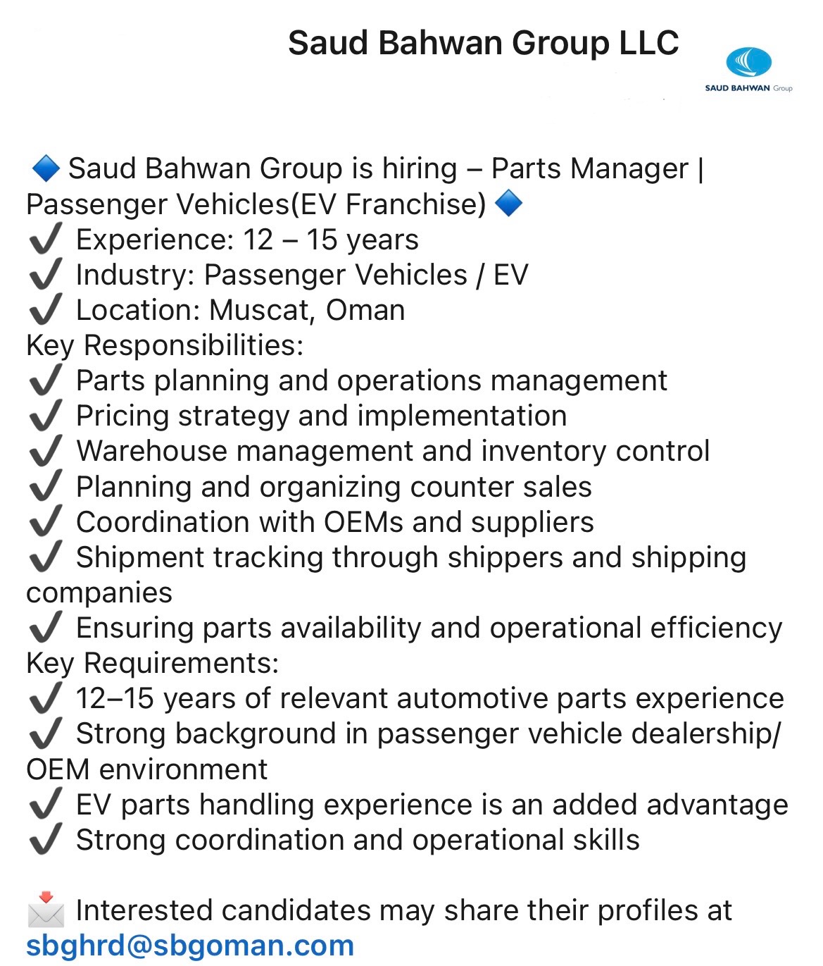 مجموعة سعود بهوان - وظيفة شاغرة ( Parts Manager | Passenger Vehicles )