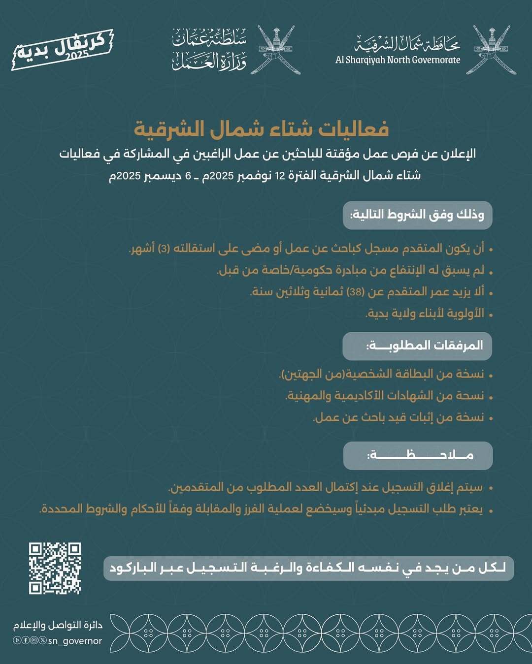محافظة شمال الشرقية - فرص عمل مؤقتة للباحثين عن عمل في فعاليات كرنفال بدية