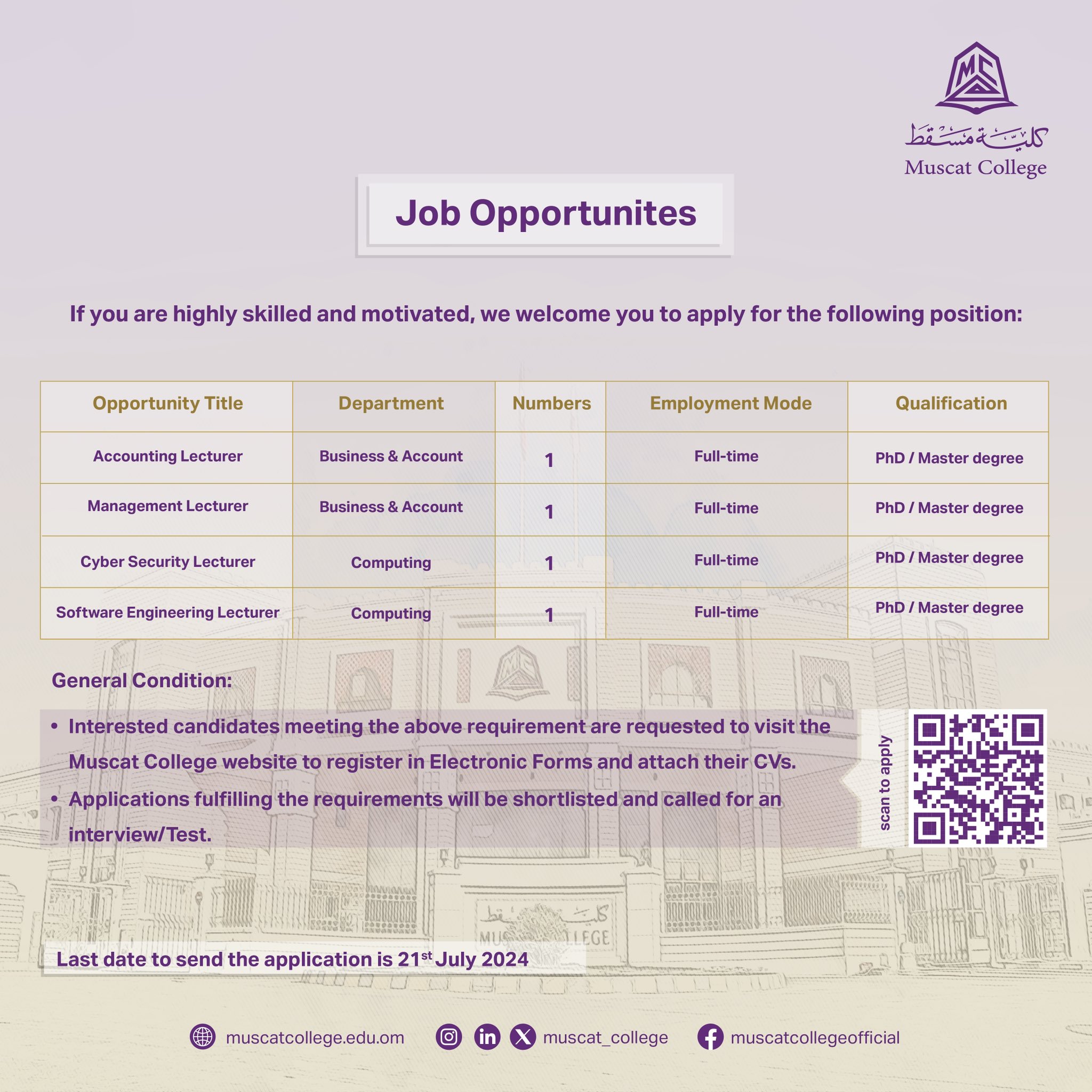 كلية مسقط - وظائف شاغرة
