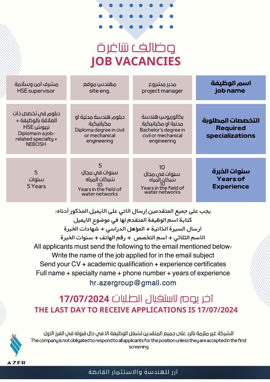 مجموعة أزر للهندسة والاستثمار القابضة - فرص وظيفية جديدة