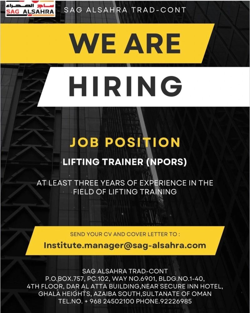 شركة SAG ALSAHRA - وظيفة شاغرة ( LIFTING TRAINER )