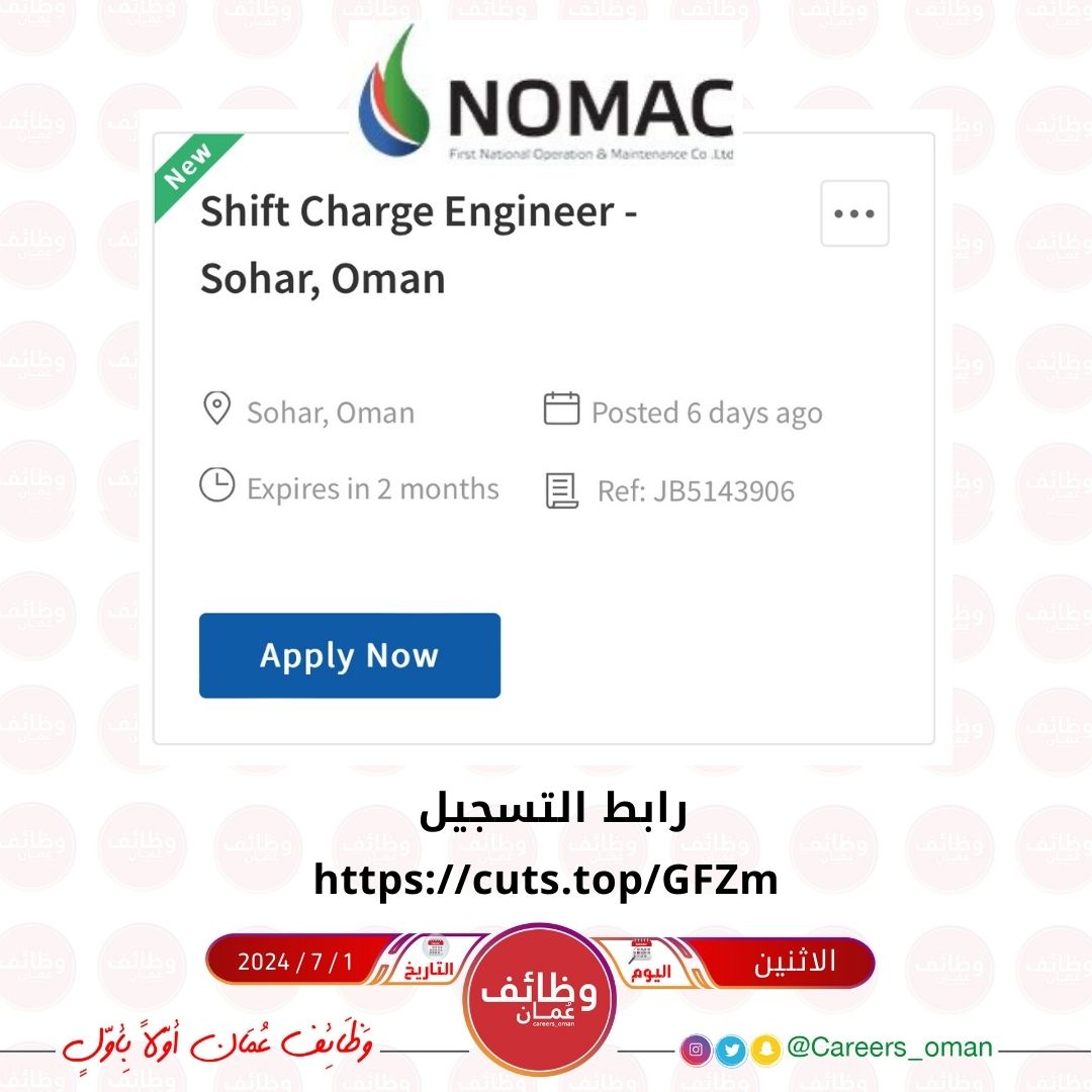 شركة نوماك في صحار - وظيفة شاغرة ( Shift Charge Engineer )