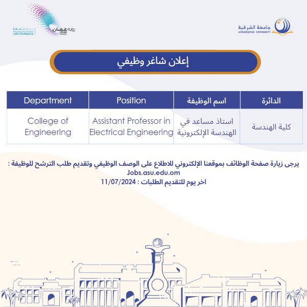 جامعة الشرقية - وظيفة شاغرة ( أستاذ مساعد في الهندسة الإلكترونية )