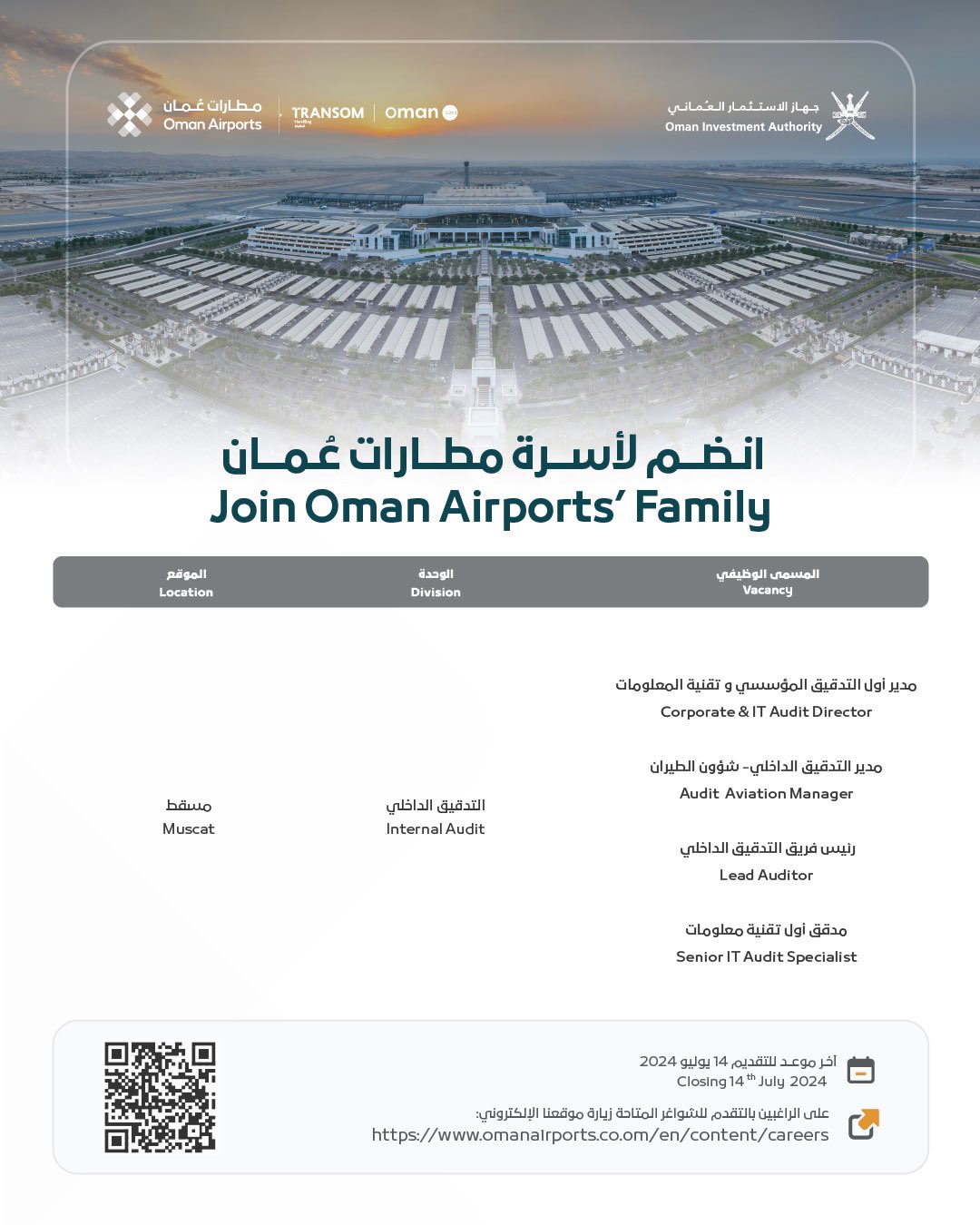 مطارات عُمان - وظائف شاغرة