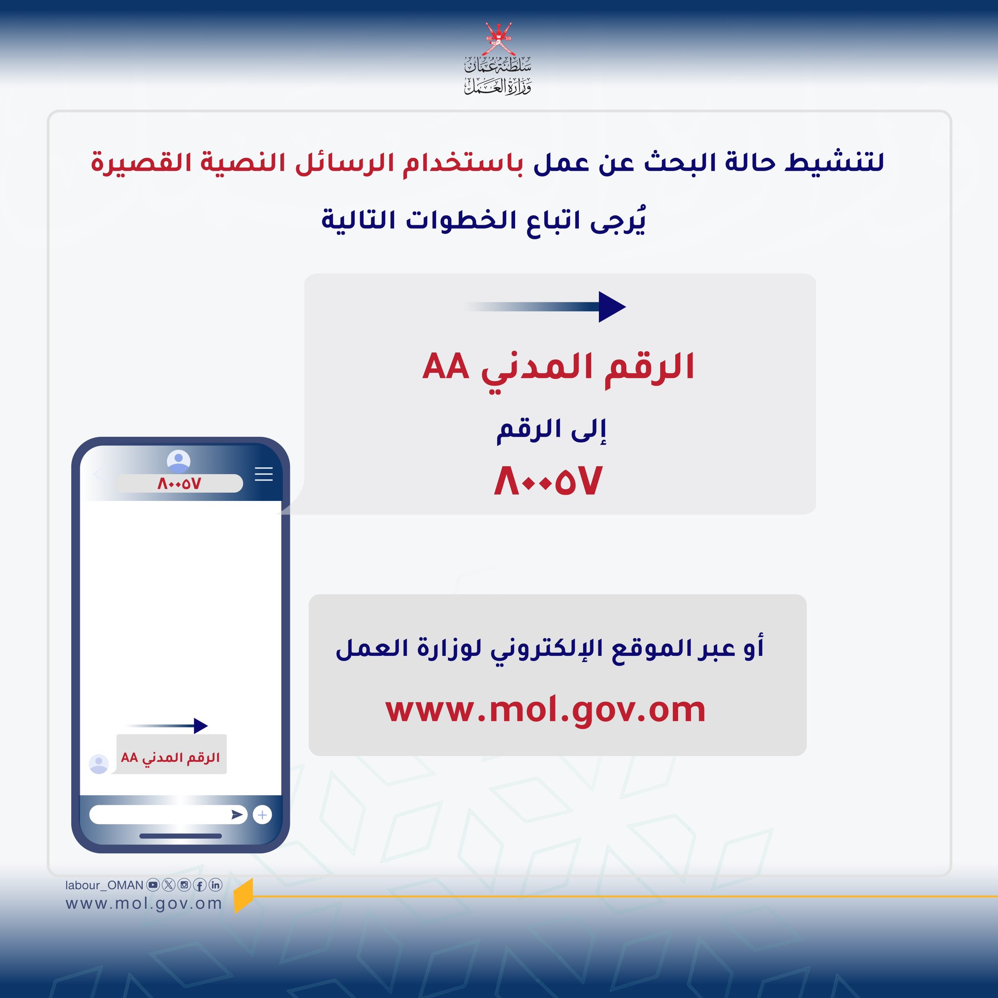 وزارة العمل - بادر بتنشيط حالة البحث عن عمل إذا كنت أحد العاملين المنهية خدماتهم، أو باحثا عن عمل