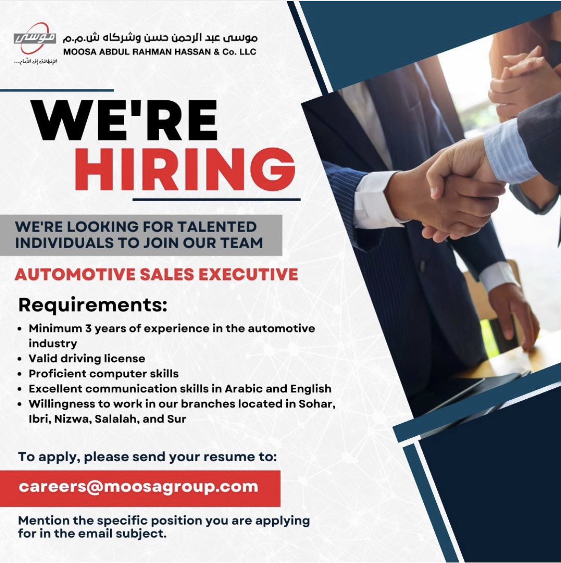 موسى عبدالرحمن حسن وشركاه - وظيفة شاغرة ( AUTOMOTIVE SALES EXECUTIVE )