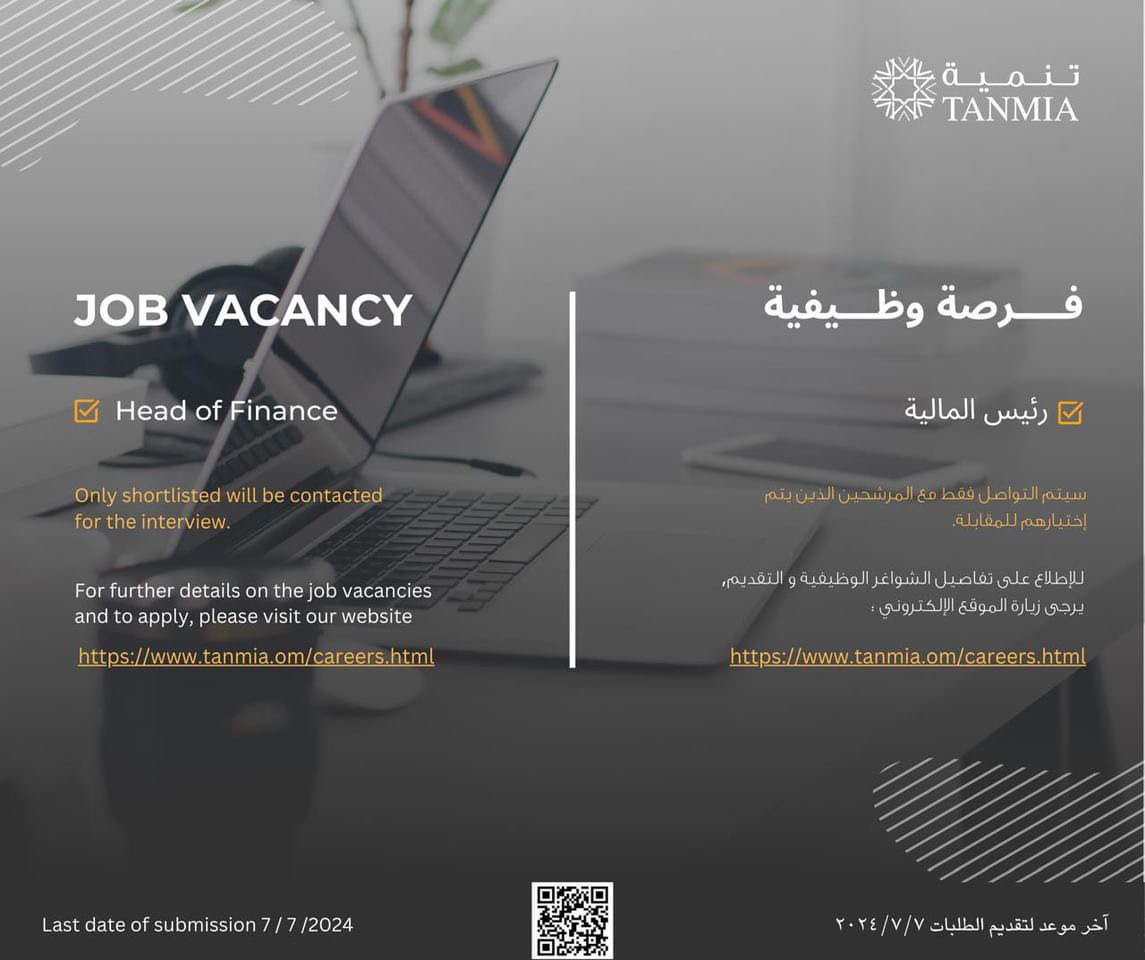 الشركة العمانية لتنمية الاستثمارات الوطنية تنمية - وظيفة شاغرة ( رئيس المالية )