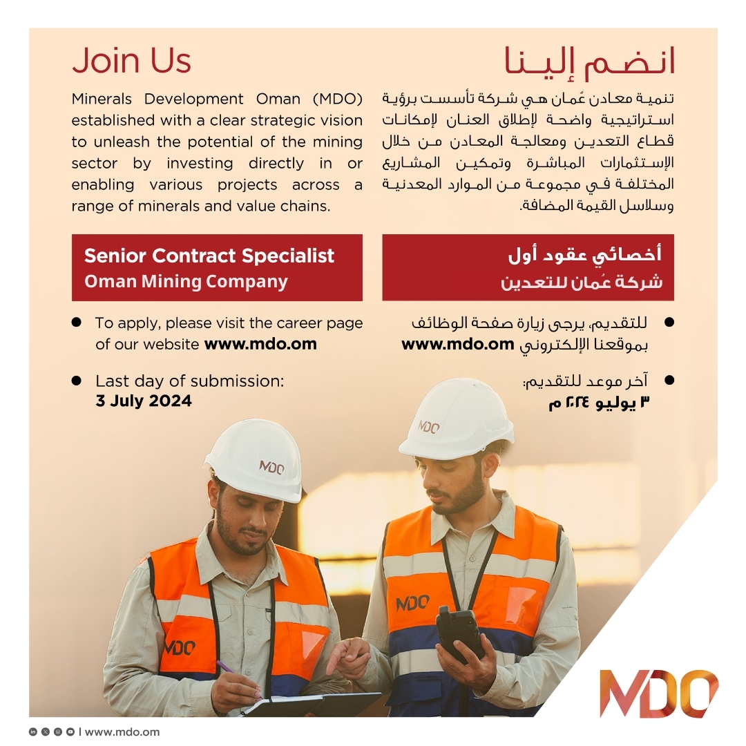 تنمية معادن عمان - وظيفة شاغرة ( اخصائي عقود أول )