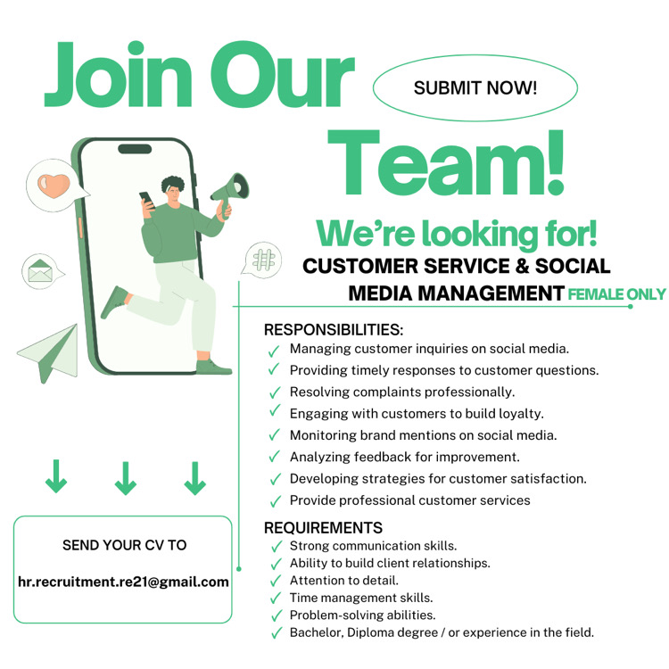 احدى الشركات الرائدة - وظيفة شاغرة ( CUSTOMER SERVICE & SOCIAL MEDIA MANAGEMENT )
