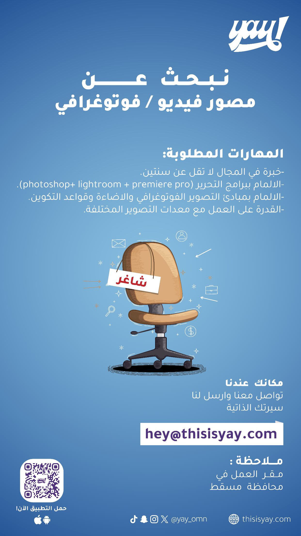 منصة YAY - فرصة وظيفية ( مصور فيديو / فوتوغرافي )