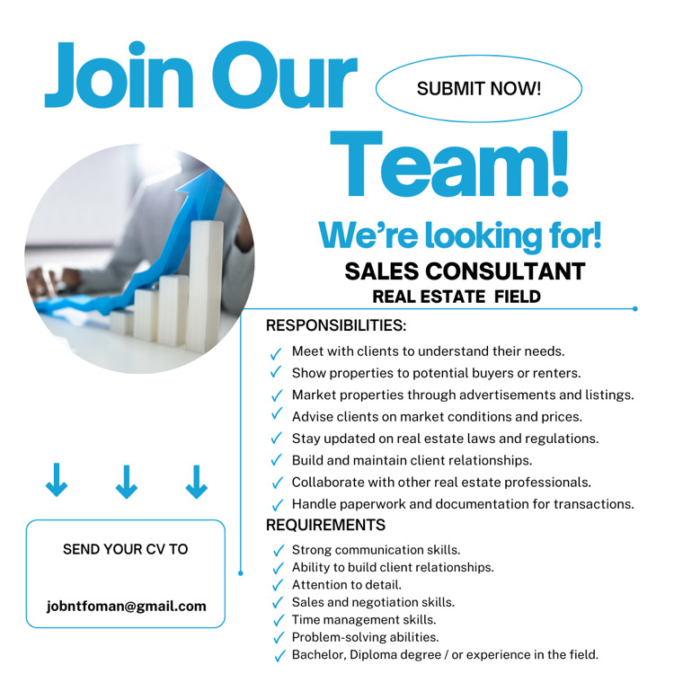 شركة رائدة في مجال العقارات - وظيفة شاغرة ( SALES CONSULTANT REAL ESTATE FIELD )
