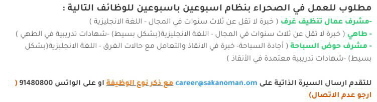 مركز سند في السيب - وظيفة شاغرة ( موظفة )