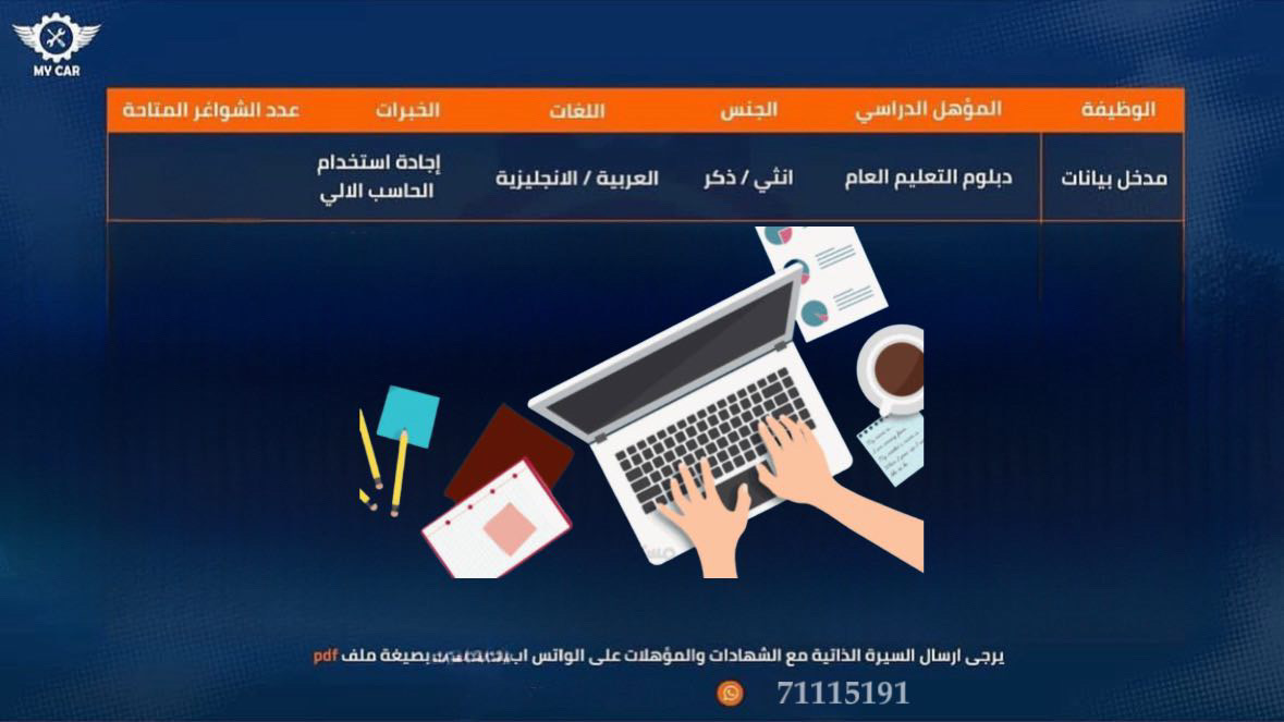 منصة my car - فرصة وظيفية ( مدخل بيانات )