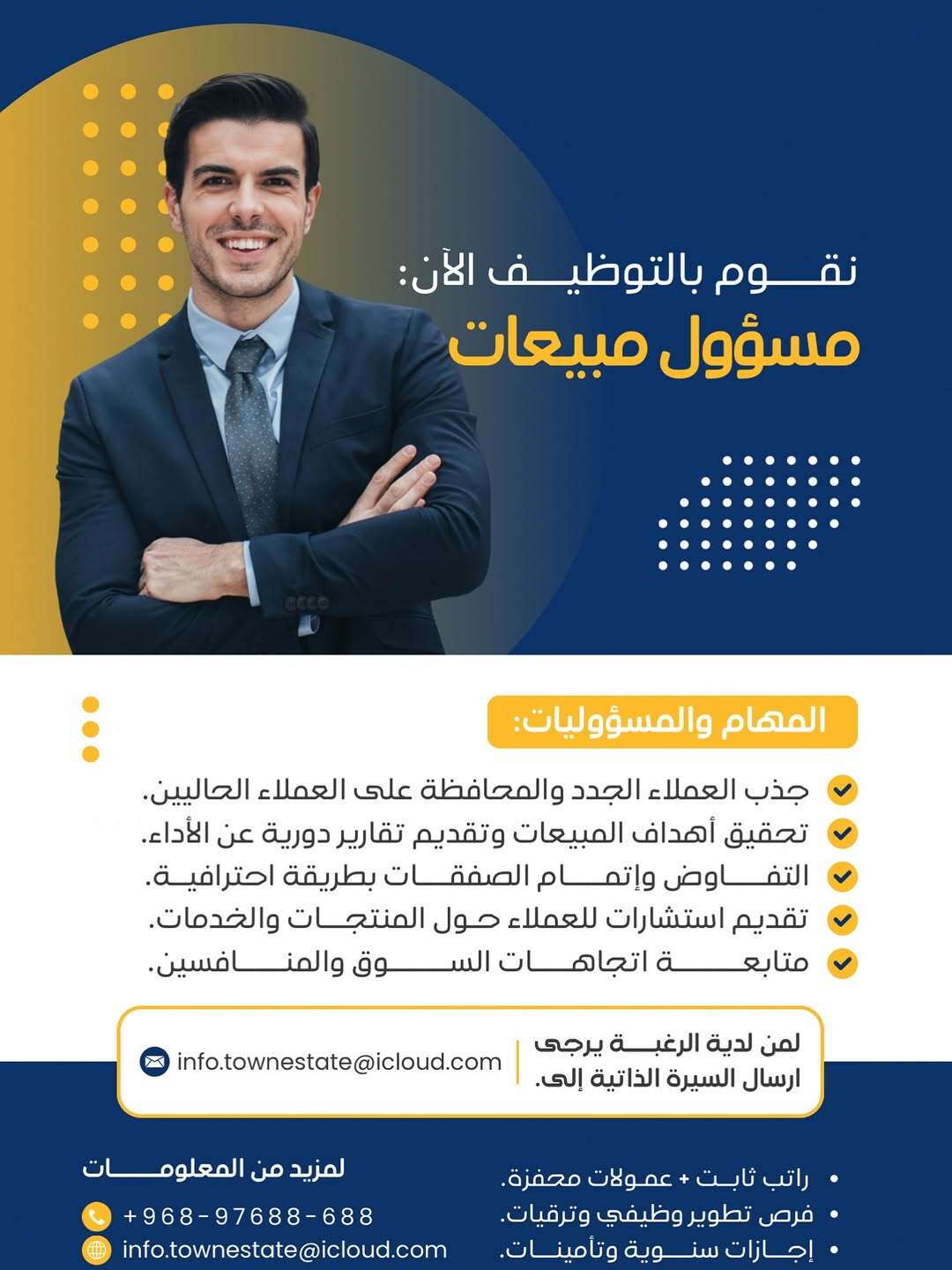 شركة تاون ايستيت للعقارات بمسقط - وظيفة شاغرة ( مسؤول مبيعات )