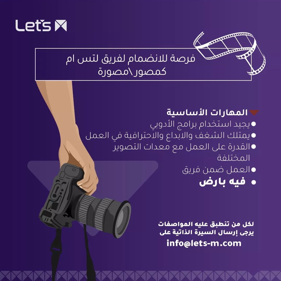 شركة لتس ام لخدمات التسويق الإلكتروني - وظيفة شاغرة ( مصور/ة )