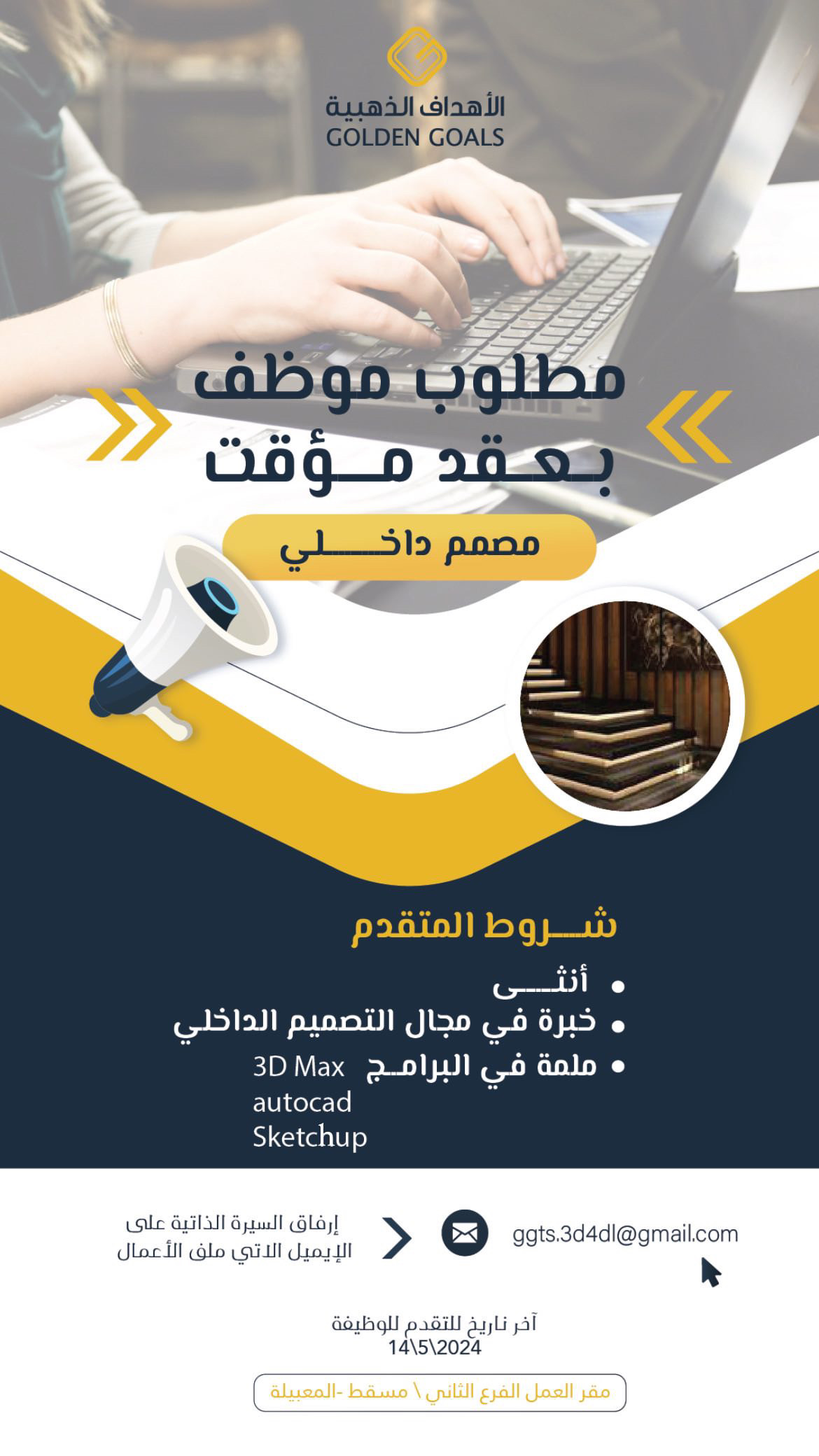 شركة الاهداف الذهبية - وظيفة شاغرة بعقد مؤقت ( مصمم داخلي )