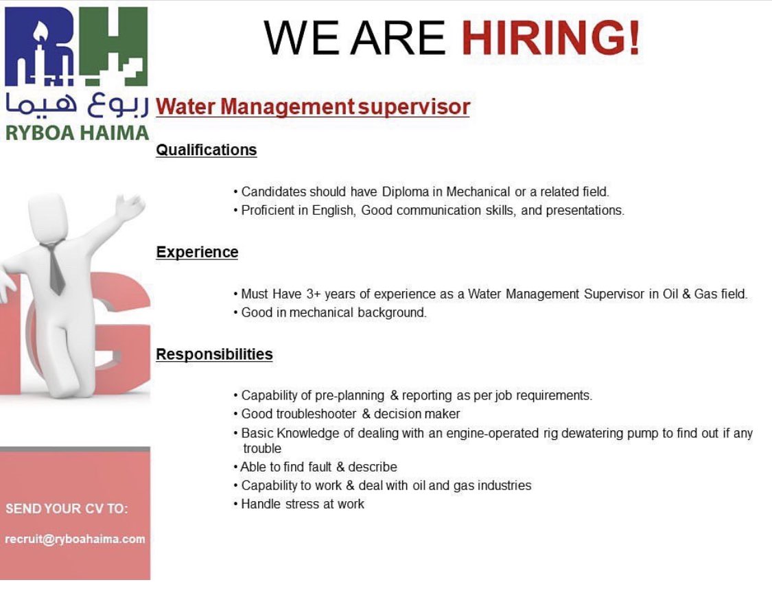 شركة ربوع هيماء - فرص وظيفية ( Sales Representative - Water Management supervisor )