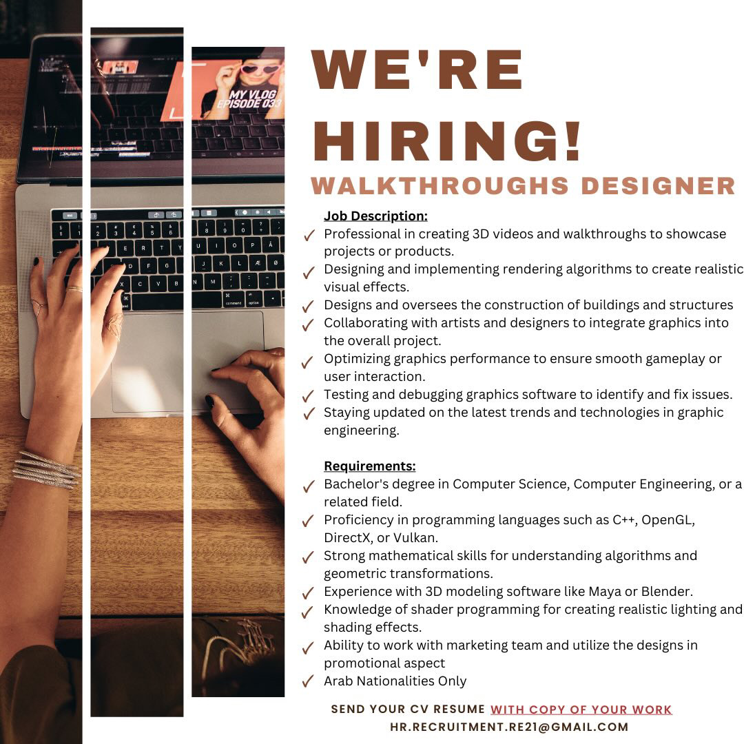 احدى الشركات الرائدة - وظيفة شاغرة ( WALKTHROUGHS DESIGNER )