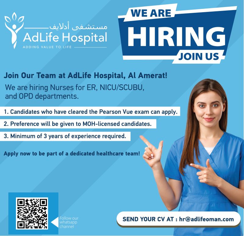 مستشفى ادلايف فرع العامرات - فرص وظيفية ( ER, NICU/SCUBU, and OPD departments )