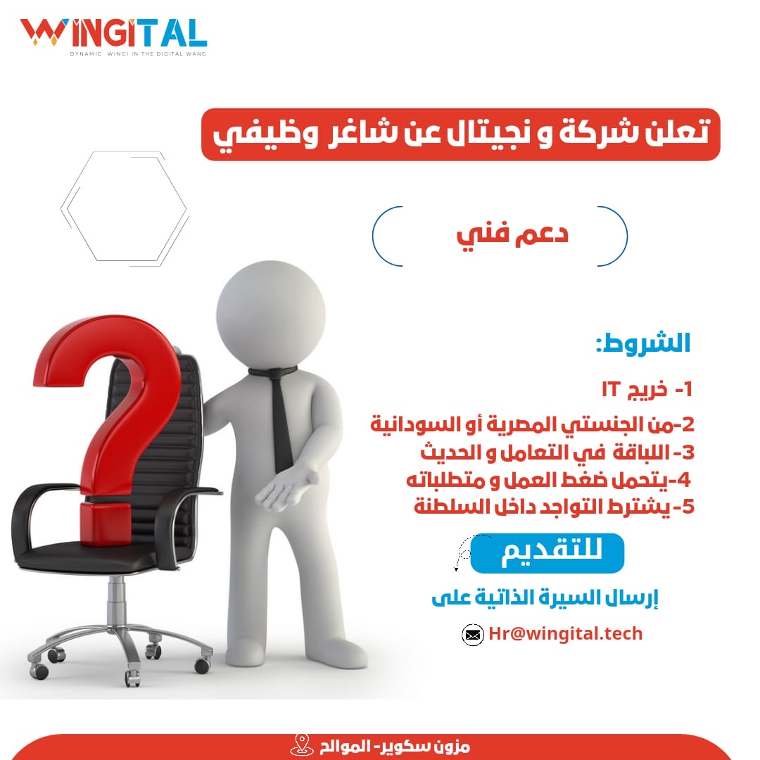 شركة و نجيتال في الموالح - وظيفة شاغرة ( دعم فني )