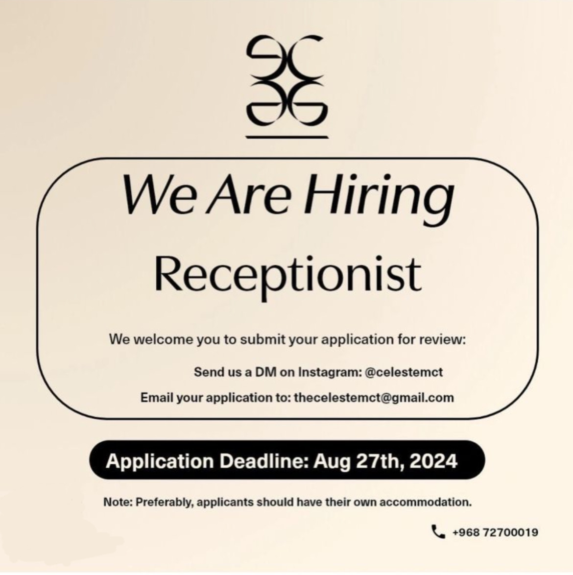 صالون نسائي في بوشر - وظيفة شاغرة ( Receptionist )