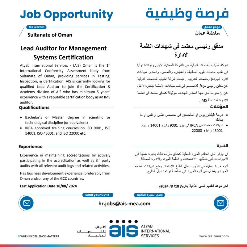 شركة أطياب للخدمات الدولية - فرص وظيفية جديدة