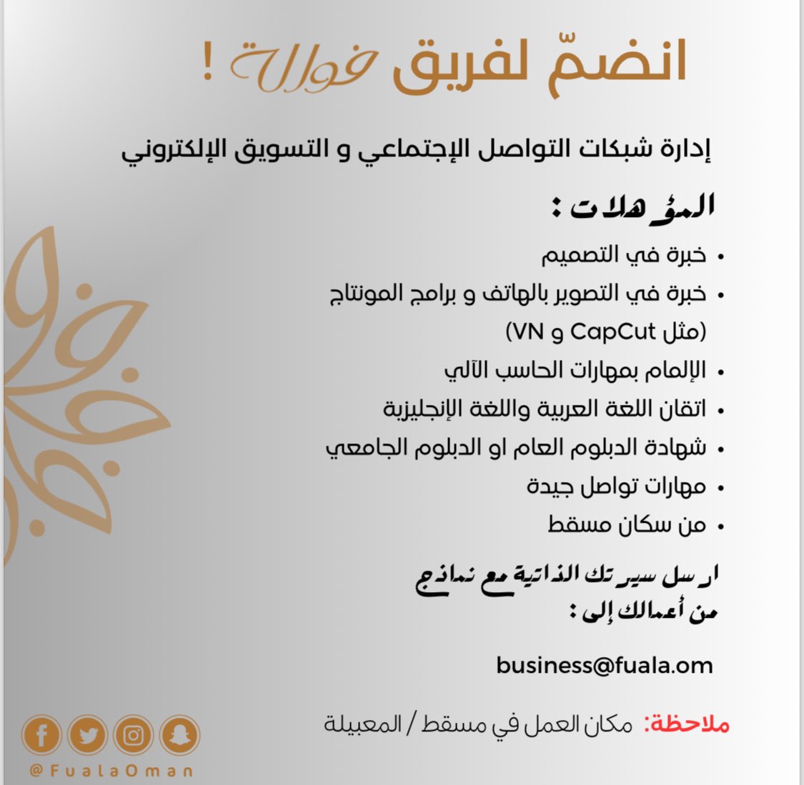 شركة فوالة للتمور والشوكولاته - فرصة وظيفية ( إدارة شبكات التواصل الإجتماعي والتسويق الإلكتروني )