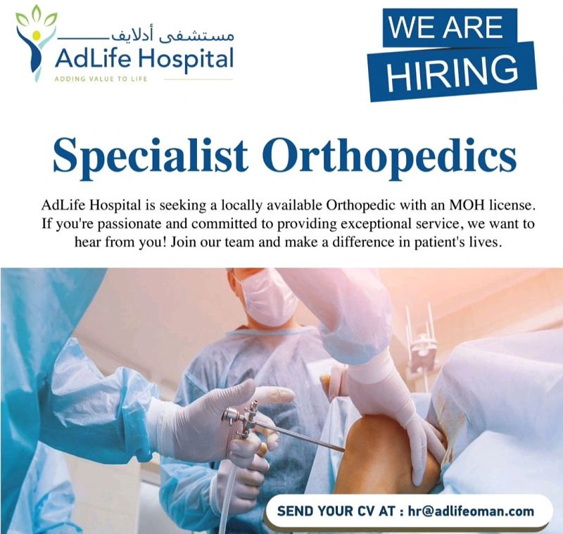مستشفى أدلايف - فرصة وظيفية ( Specialist Orthopedics )