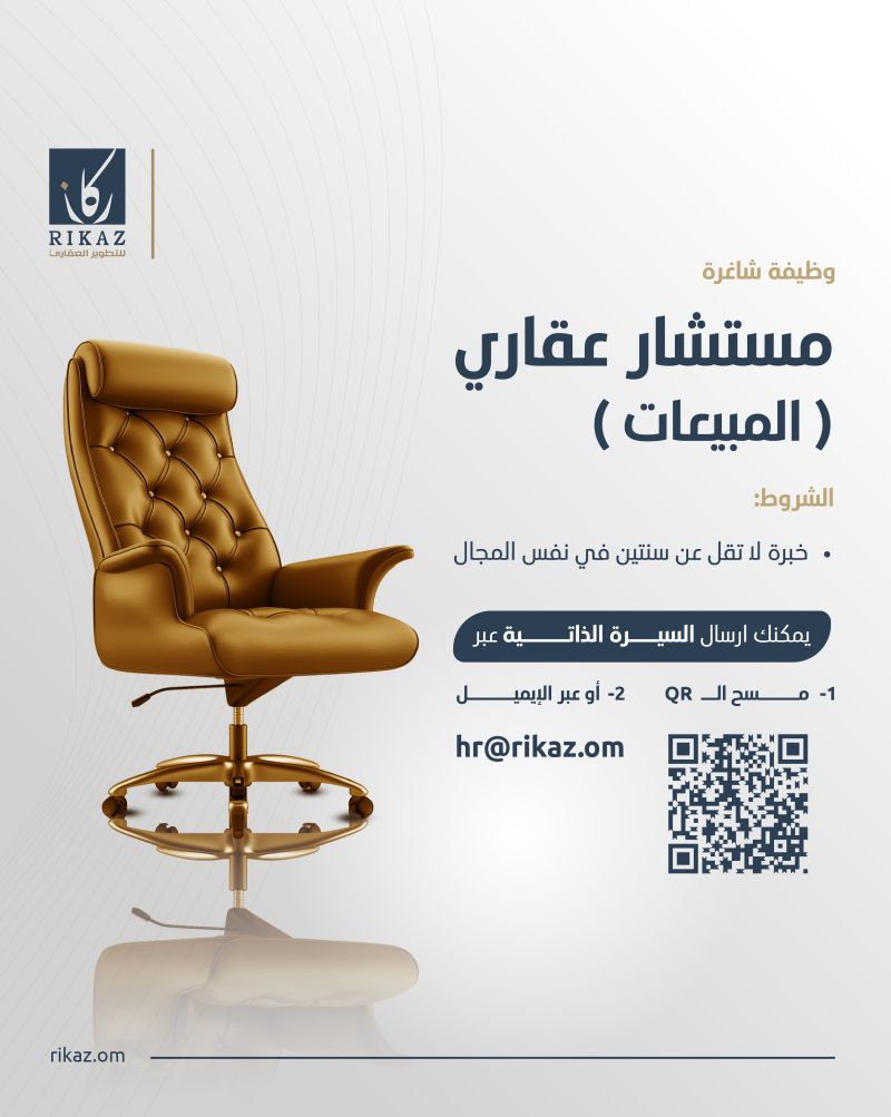 شركة ركاز للتطوير العقاري - وظيفة شاغرة ( مستشار عقاري - المبيعات )