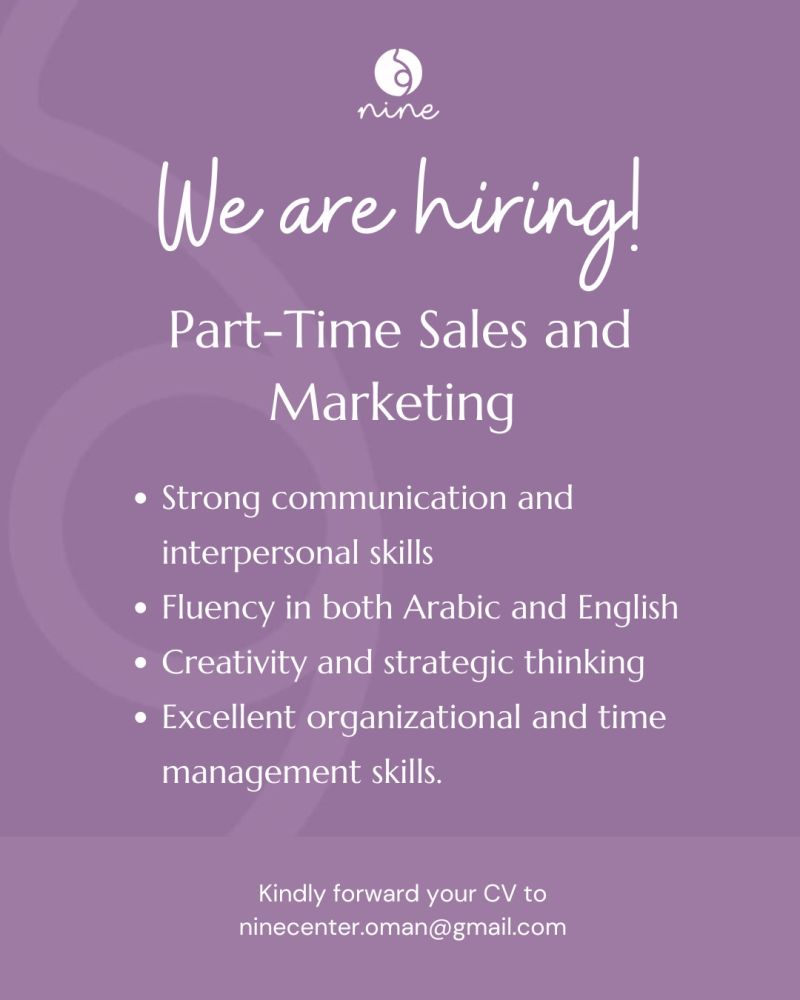 عيادة Nine - فرصة وظيفية بدوام جزئي ( Part-Time Sales and Marketing )