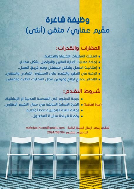 شركة رائدة في بركاء - وظيفة شاغرة ( مقيم عقاري / مثمن انثى )
