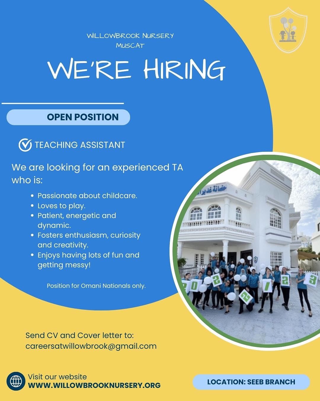حضانة ويلبروك - وظيفة شاغرة ( TEACHING ASSISTANT )