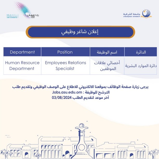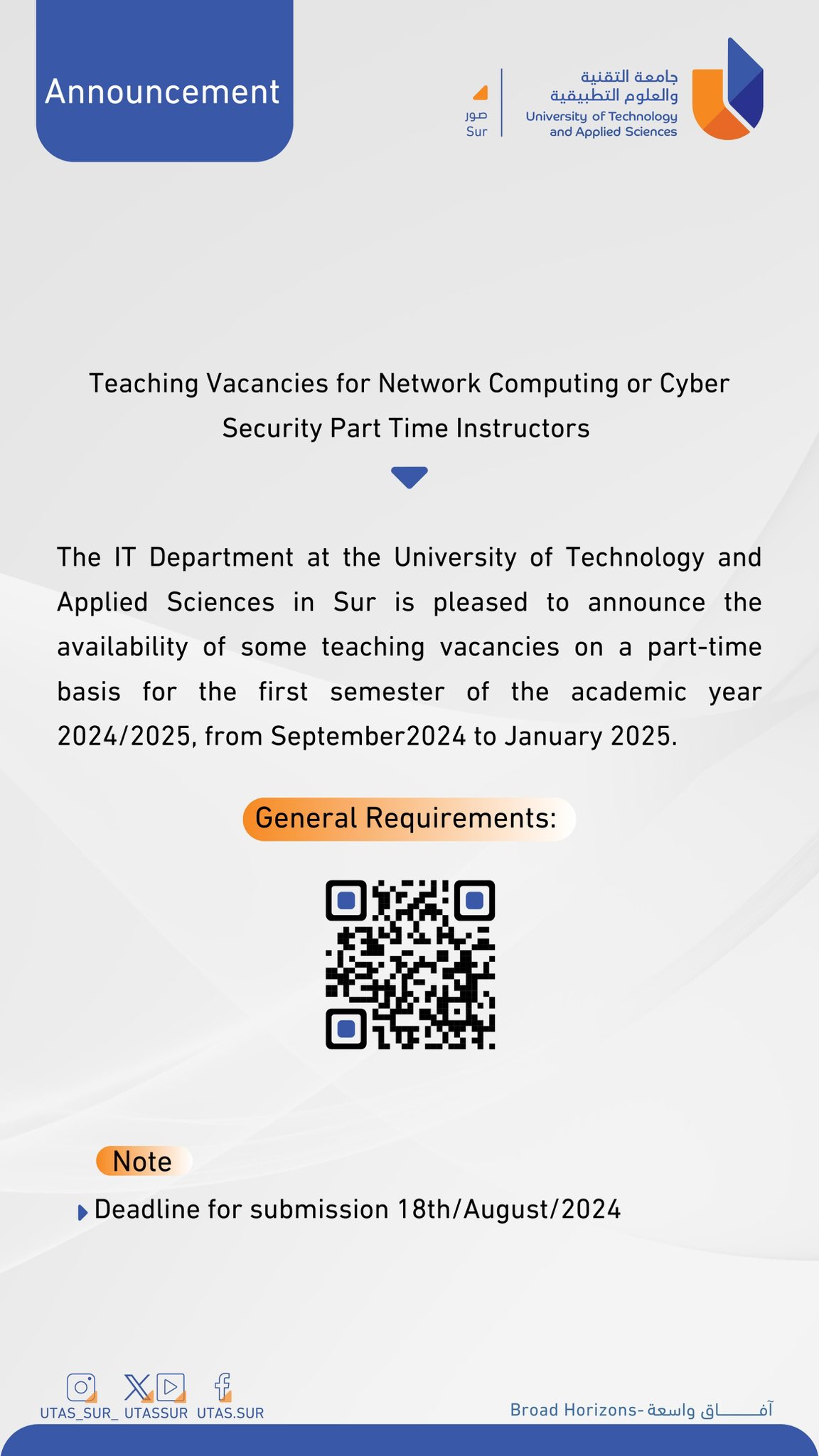 جامعة التقنية والعلوم التطبيقية بصور - وظائف تدريسية شاغرة "تخصص شبكات الحاسوب والأمن السبيراني" بنظام الدوام الجزئي