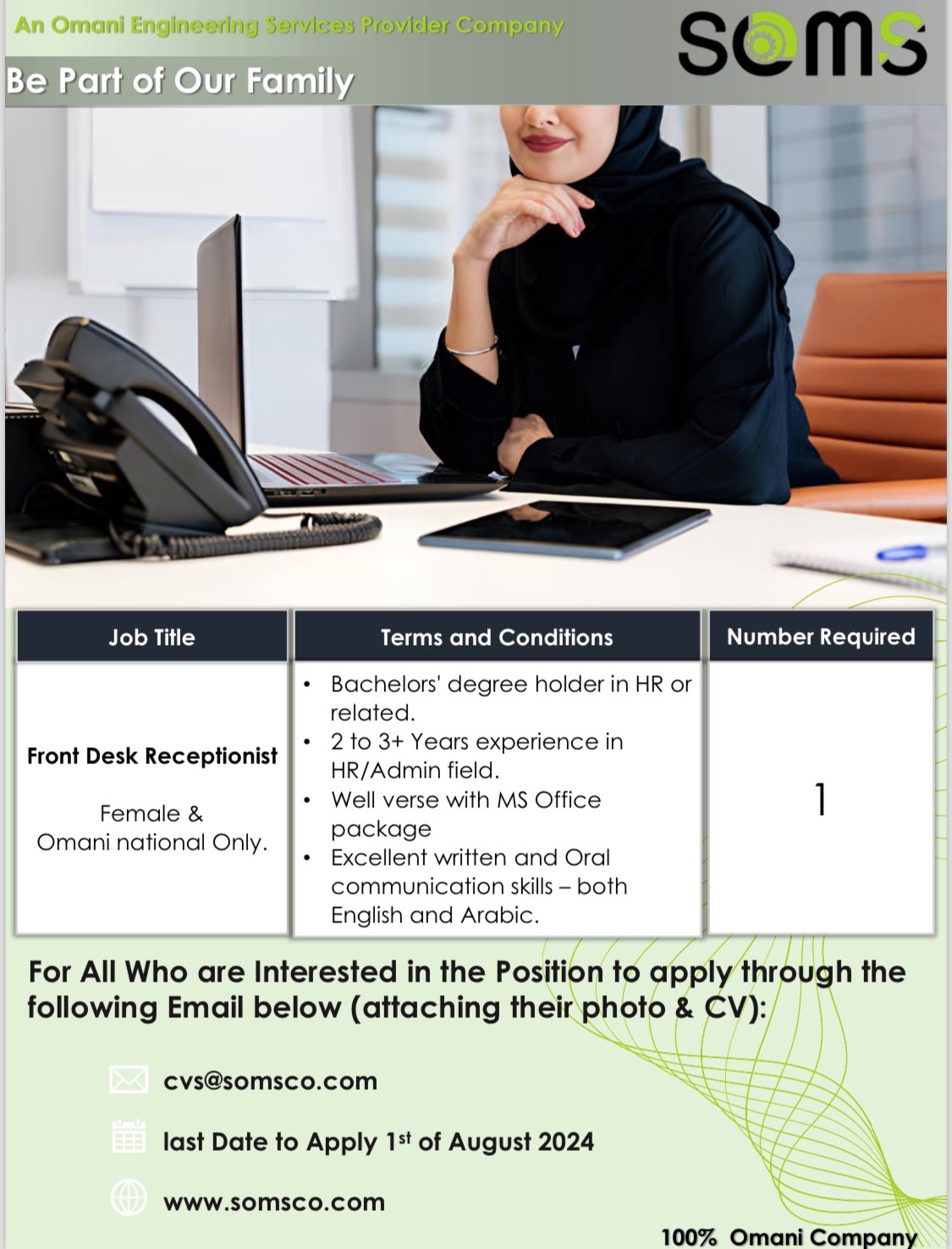 شركة الأولية الحديثة - وظيفة شاغرة ( Front Desk Receptionist )