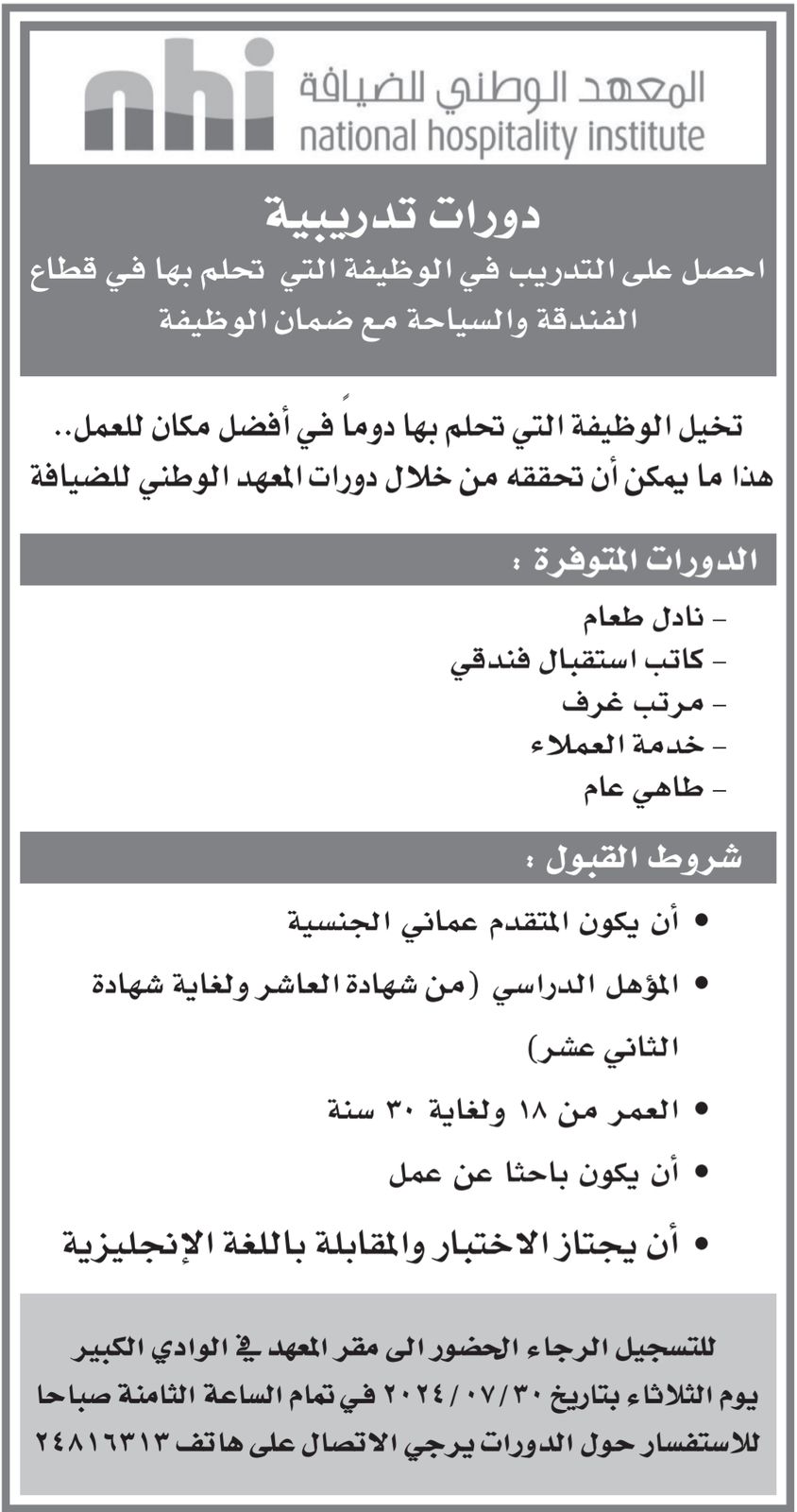 المعهد الوطني للضيافة - دورات تدريبية في قطاع الفندقة والسياحة مع ضمان الوظيفة