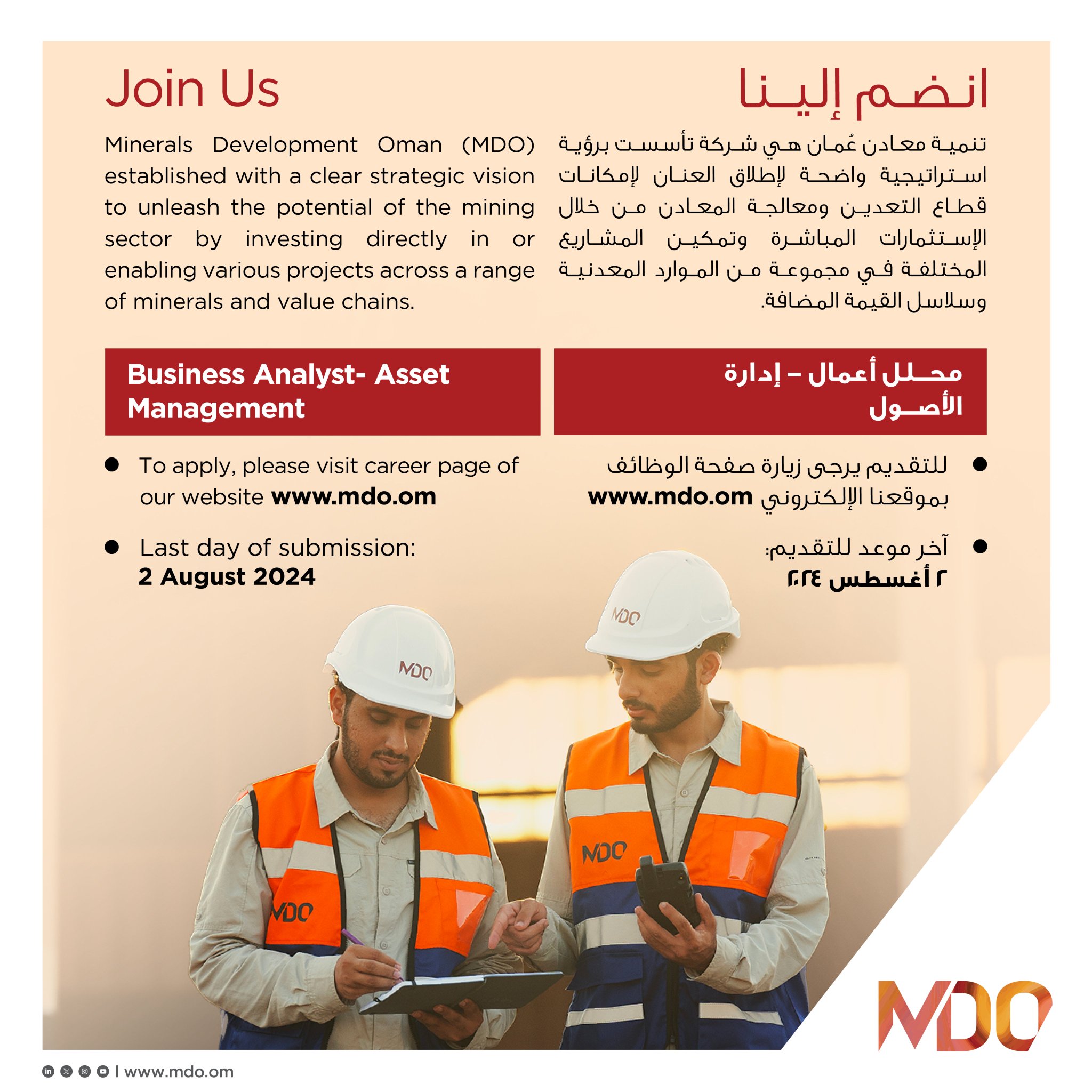 تنمية معادن عمان - وظيفة شاغرة ( محلل أعمال - إدارة الأصول )